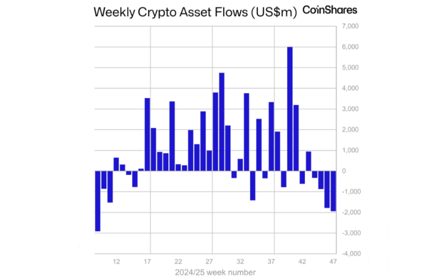 Digital asset funds saw over $5.11 billion in outflows during the first three weeks leading up to the November correction.